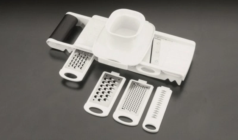 Κόπτης και τρίφτης, εύκολος στην χρήση, με 5 ανοξείδωτες λεπίδες και pusher ασφαλείας.