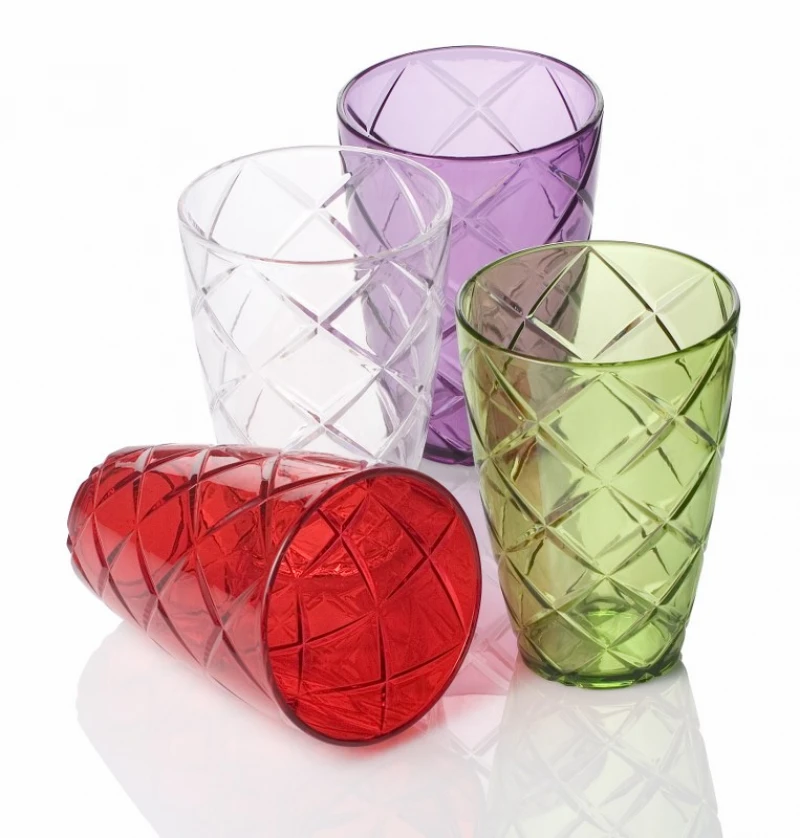 Ποτήρι νερού ακρυλικό διαθέσιμο σε 4 χρώματα, διάφανο, κόκκινο, πράσινο και μωβ από την Veltihome - Χωρητικότητα: 400cc