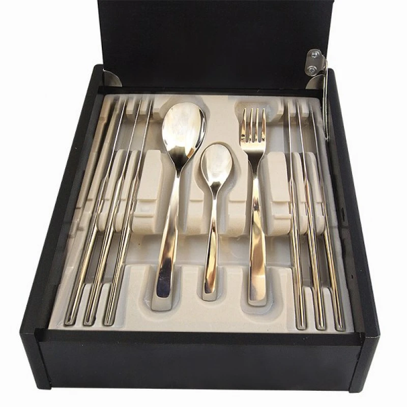 Μαχαιροπήρουνα σετ 30 τεμαχίων ανοξείδωτα 18/10 σε ξύλινο κουτί, ισπανικής προέλευσης. Το σετ αποτελείται από: 6 πηρούνια φαγητού, 6 κουτάλια φαγητού, 6 μαχαίρια φαγητού, 6 κουτάλια γλυκού, 6 πηρούνια γλυκού.