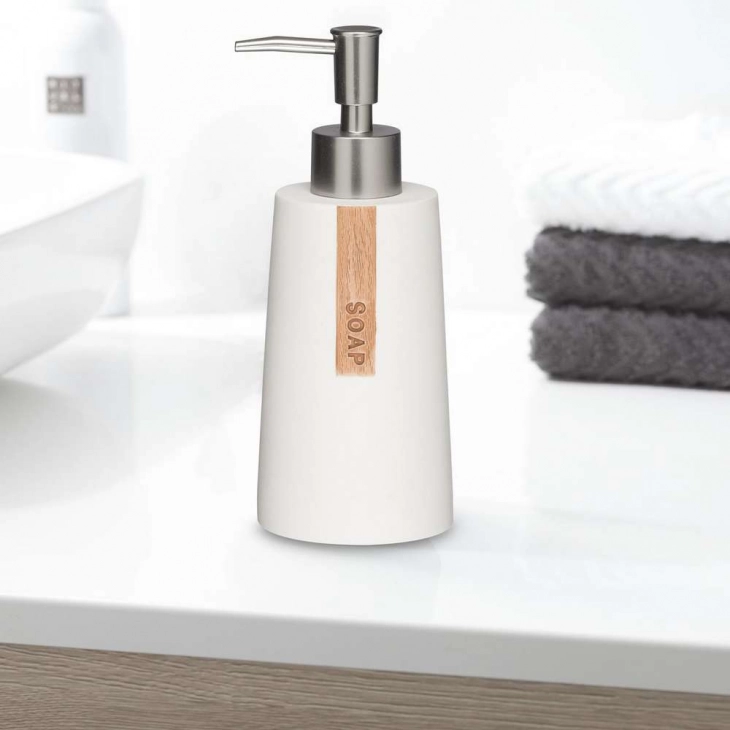 Το δοχείο σαπουνιού Pierra της Sealskin είναι κατασκευασμένο από πολυρεζίνη, ένα ανθεκτικό υλικό που κατασκευάζεται με το συνδυασμό φυσικής πέτρας και συνθετικής ρητίνης. Οι πινελιές που μοιάζουν με ξύλο στο πλάι αυτού του ζωγραφισμένου στο χέρι δοχείου σαπουνιού του δίνουν μια κομψή όψη. Και, φυσικά, το δοχείο σαπουνιού είναι τόσο πρακτικό όσο και υγιεινό.