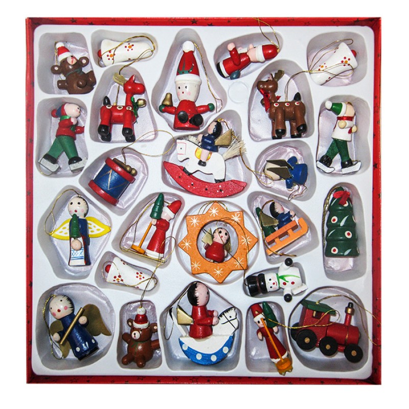 Χριστουγεννιάτικα στολίδια ξύλινα Σετ 24τμχ από την Xmas fest- Διαστάσεις: 24x24εκ., Διαστάσεις στολιδιού: 5,5εκ.