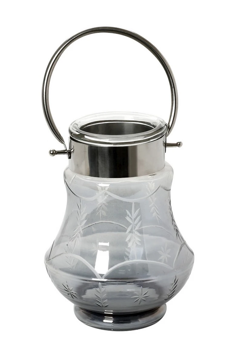 Φανάρι γυάλινο σε γκρι χρώμα από την ESPIEL - Διαστάσεις: 18χ24εκ.