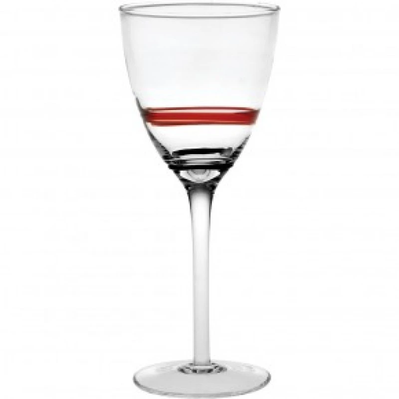 Ποτήρι κρασιού σετ 6τμχ κρυσταλλίνης 300ml διάφανο με κόκκινη και μαύρη λεπτομέρεια περιμετρικά του ποτηριού.