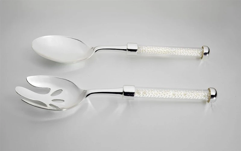 Σετ 2τμχ κουτάλες σερβιρίσματος από ανοξείδωτο ατσάλι με πέρλες από την ESPIEL - Διαστάσεις: 26εκ.