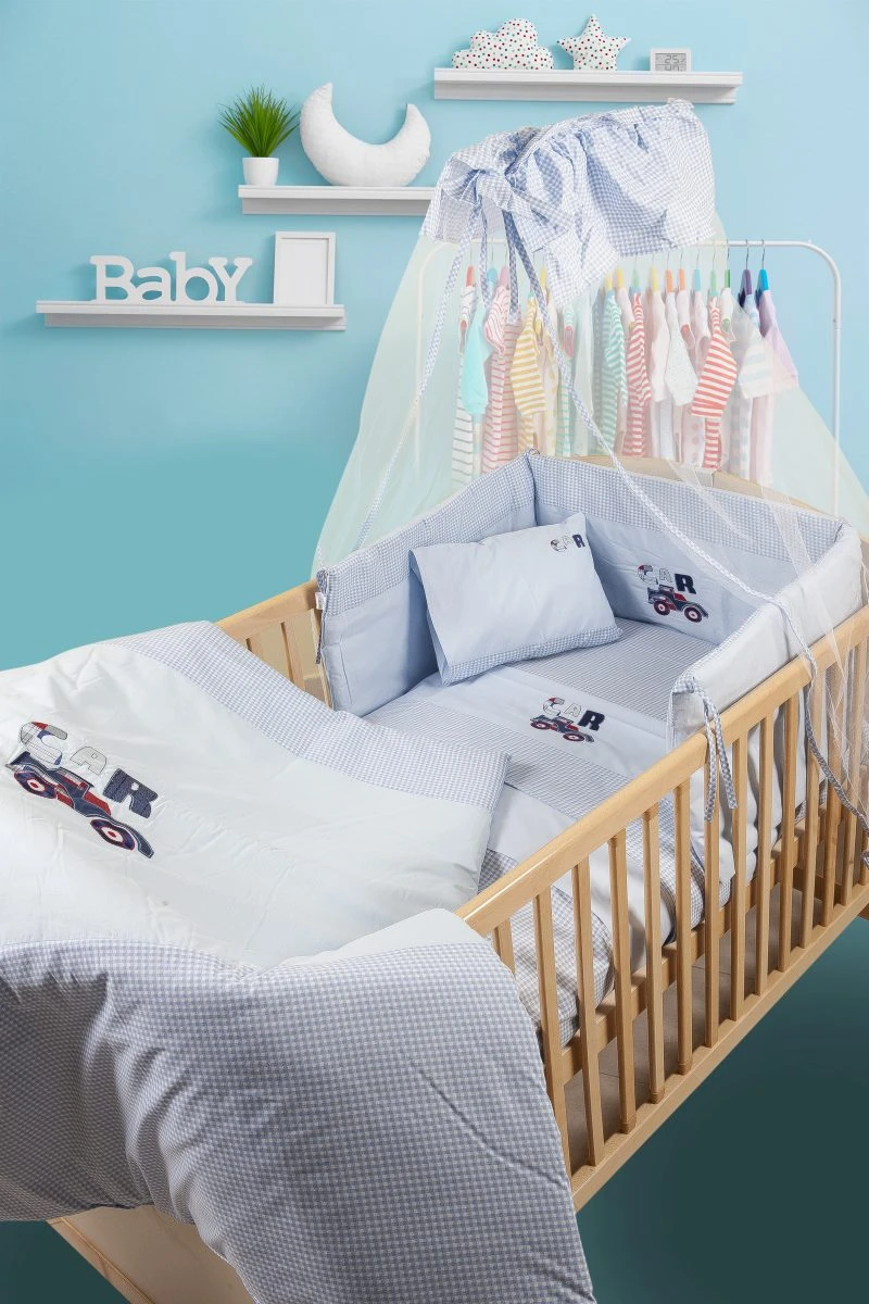 Πάπλωμα μπεμπέ με εξωτερικό ύφασμα 100% βαμβάκι περκάλι και γέμιση αντιαλλεργική βάτα σε σιέλ χρώμα Car 29 από την Dim Collection - Διαστάσεις: 110x140εκ.