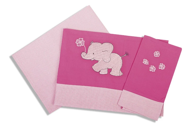 Σετ σεντόνια μπεμπέ 100% βαμβάκι περκάλι,144 κλωστών με κέντημα και φάσα σε φούξια χρώμα με λευκό - ροζ καρό σχέδιο και Ελεφαντάκι 18 από την Dim Collection. Το σετ περιλαμβάνει: 2 σεντόνια 120x170εκ. και 1 μαξιλαροθήκη 30x40εκ.