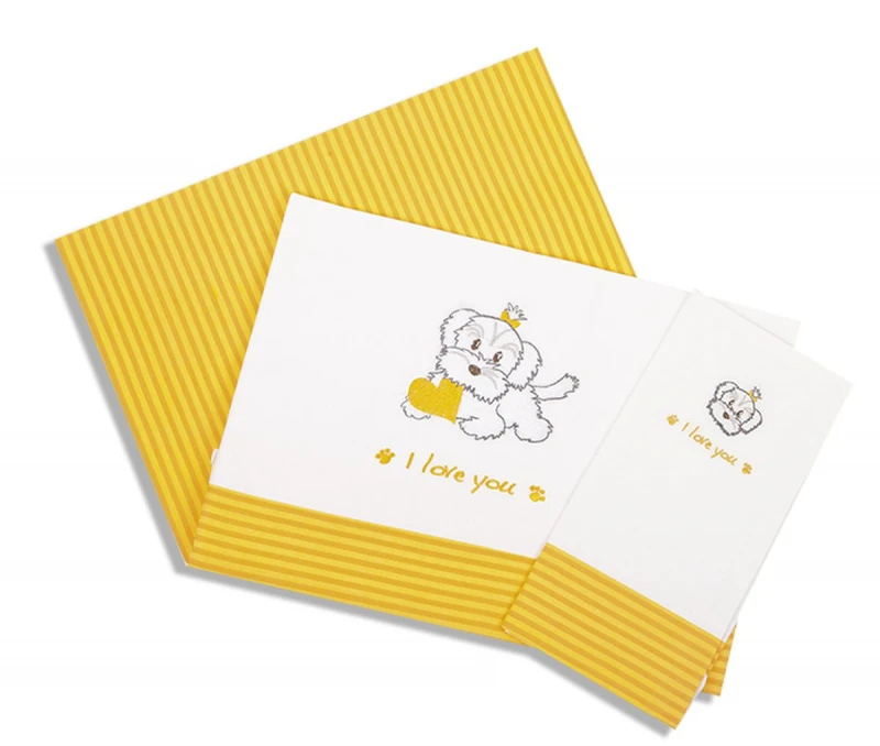 Σετ σεντόνια μπεμπέ 100% βαμβάκι περκάλι,144 κλωστών με κέντημα και φάσα σε λευκό χρώμα με πορτοκαλί - κίτρινες ρίγες Σκυλάκι 121 από την Dim Collection. Το σετ περιλαμβάνει: 2 σεντόνια 120x170εκ. και 1 μαξιλαροθήκη 30x40εκ.