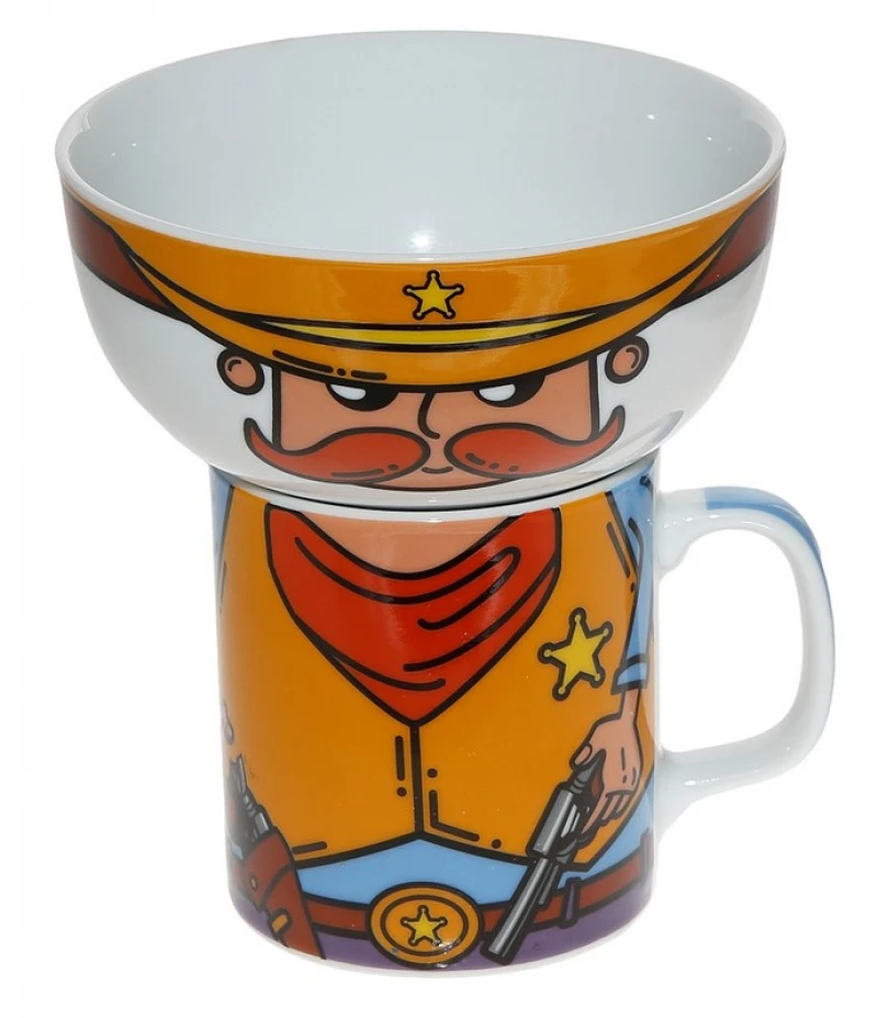 Σετ 2τμχ κούπα με μπωλ "cowboy" από την ESPIEL - Διαστάσεις: 11x13εκ.