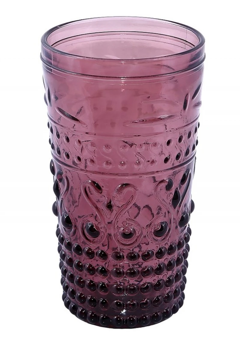 Ποτήρι νερού σετ 6τμχ ανάγλυφο σε μωβ χρώμα, 550ML από την ESPIEL - Διαστάσεις: 8,5x16εκ.