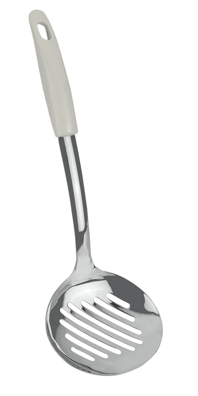 Κουτάλα τρυπητή ανοξείδωτη με λευκή χειρολαβή της σειράς Laguna από την METALTEX.