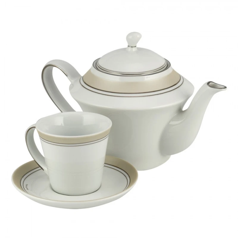 Σετ τσαγιού 9τμχ πορσελάνης Prestige με λεπτομέρεια πλατίνα από την WM Collection. Το σετ περιλαμβάνει: 1 τσαγιέρα 1200ml., 1 ζαχαριέρα 250ml., 1 γαλατιέρα 200ml. και 6 φλυτζάνια τσαγιού 200ml.