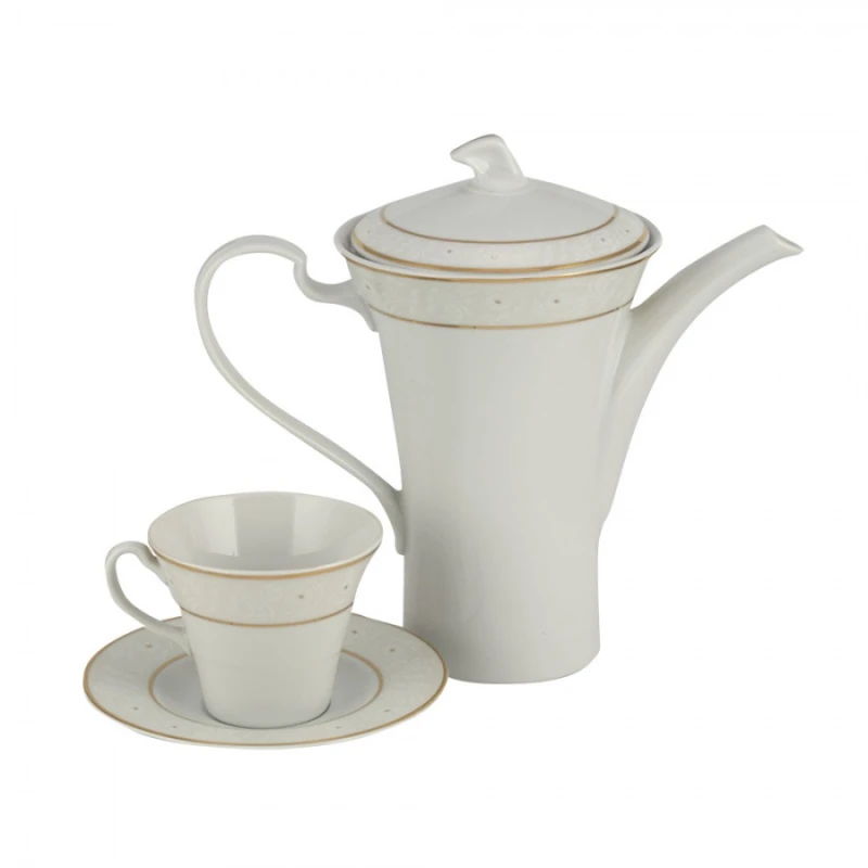 Σετ τσαγιού 9τμχ πορσελάνης με λεπτομέρειες χρυσού από την WM Collection. Το σετ περιλαμβάνει: 1 τσαγιέρα 1350ml., 1 ζαχαριέρα 250ml., 1 γαλατιέρα 200ml. και 6 φλυτζάνια τσαγιού 200ml.