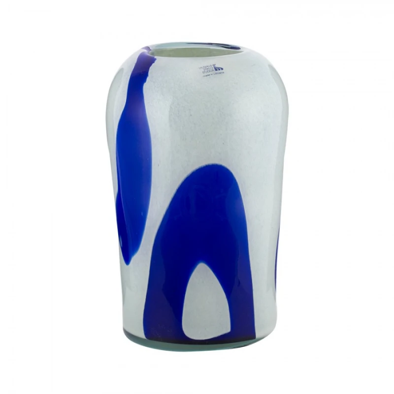 Χειροποίητο βάζο από φυσητό γυαλί σε λευκό - μπλε χρώμα από την WM Collection - Διαστάσεις: 18x29εκ.