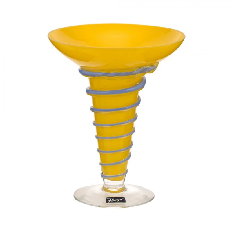 Βάζο από κρυσταλλίνη σε κίτρινο χρώμα με γαλάζιες λεπτομέρειες από την WM Collection - Διαστάσεις: 20x24εκ.