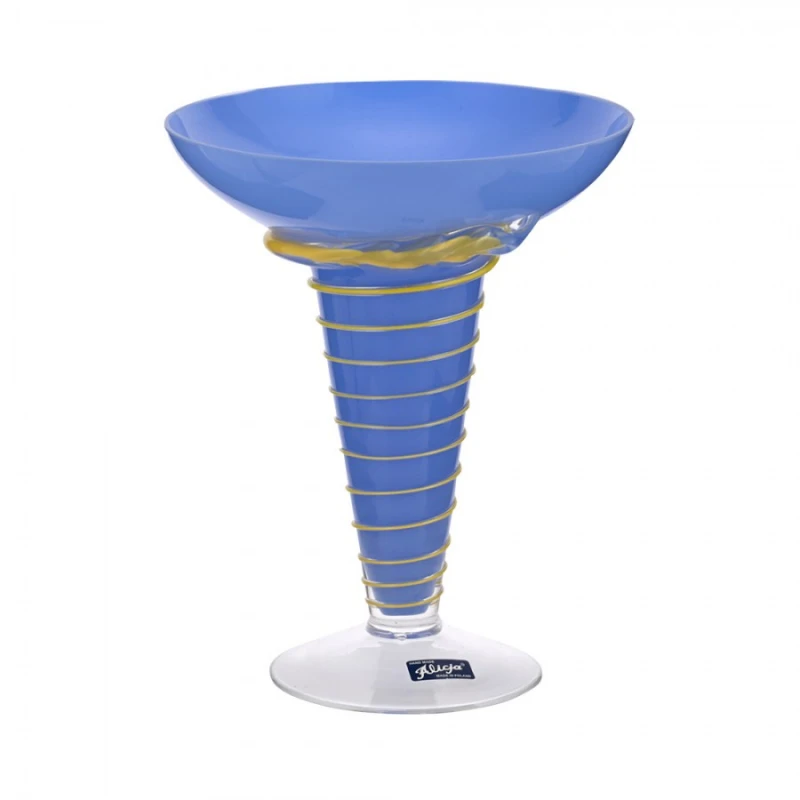 Βάζο από κρυσταλλίνη σε γαλάζιο χρώμα με κίτρινες λεπτομέρειες από την WM Collection - Διαστάσεις: 20x24εκ.
