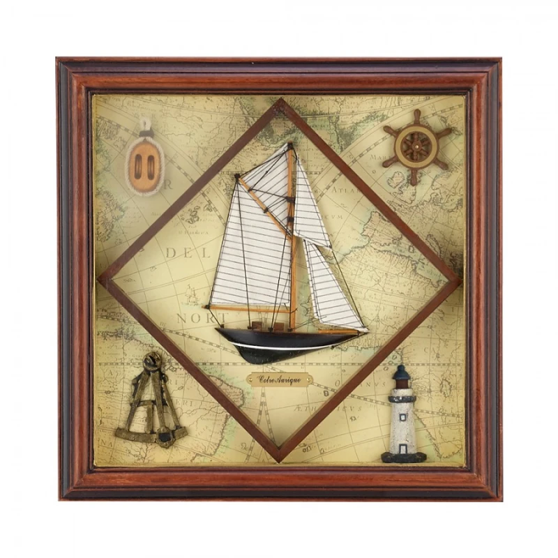 Ξύλινο κάδρο με χειροποίητη ναυτική παράσταση από την WM Collection - Διαστάσεις: 36x5x36εκ.
