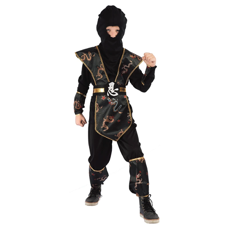Χρυσός ninja. Περιέχει:μπλούζα, παντελόνι, ζώνη, πανοπλία, γκέτες, αξεσουάρ χεριών, κουκούλα***Παρακαλώ πολύ αναγράψτε στα σχόλια της παραγγελίας σας το διαθέσιμο μέγεθος που επιθυμείτε.