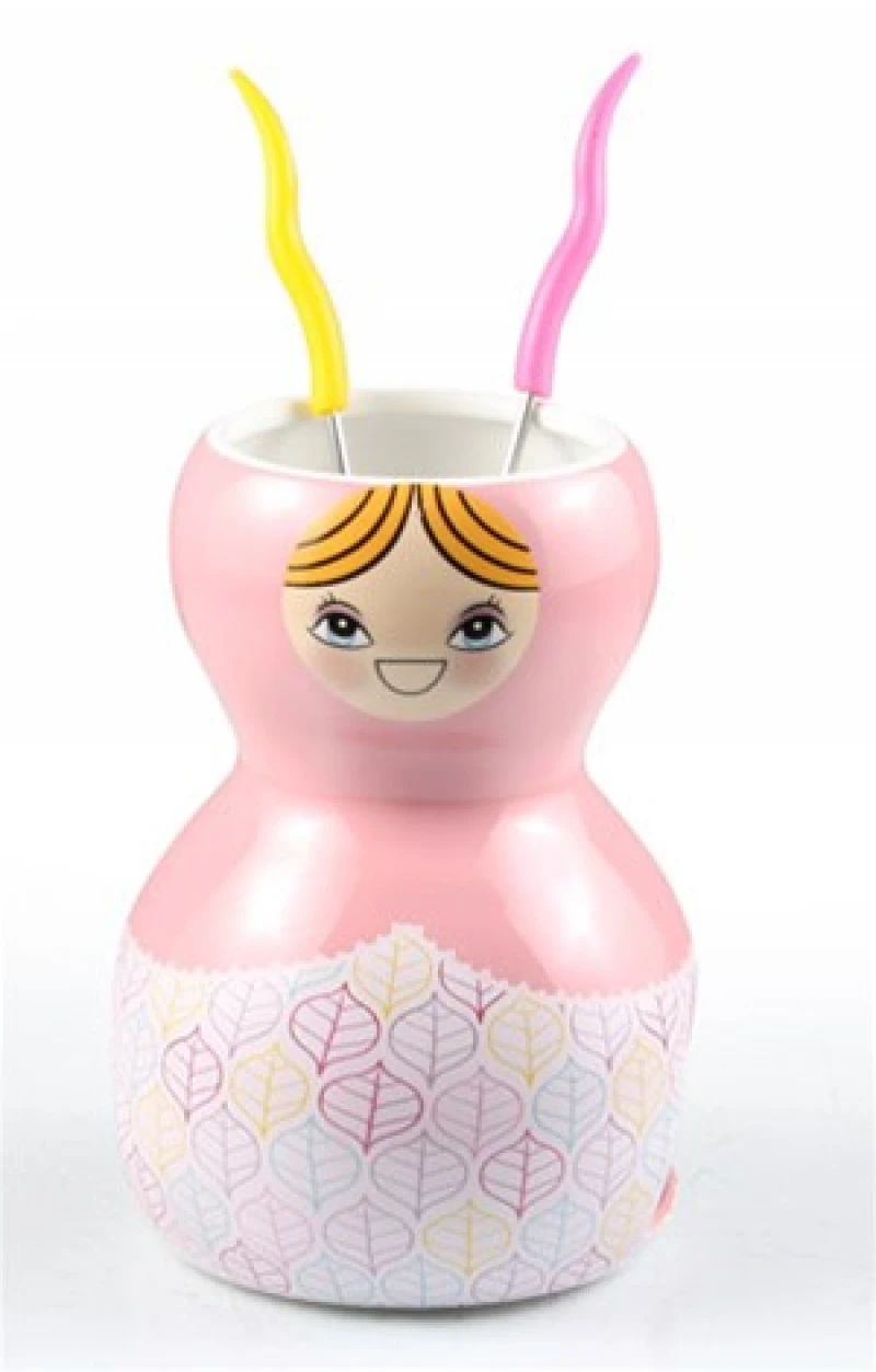 Σετ φοντί "μπαμπούσκα"κούπα και 2 πηρουνάκια σε ροζ χρώμα από την ESPIEL - Διαστάσεις: 11x16εκ.
