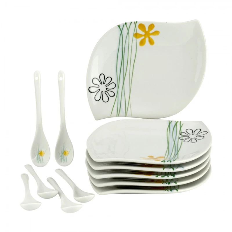Σετ πάστας 12τμχ πορσελάνης με πιατάκια και κουταλάκια σε λευκό χρώμα με σχέδιο λουλούδια από την WM Collection - Το σετ περιλαμβάνει: 6 πιατάκια πάστας 19εκ. και 6 κουταλάκια.