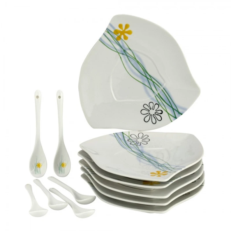 Σετ πάστας 12τμχ πορσελάνης με πιατάκια και κουταλάκια σε λευκό χρώμα με σχέδιο λουλούδια από την WM Collection - Το σετ περιλαμβάνει: 6 πιατάκια πάστας 19εκ. και 6 κουταλάκια.