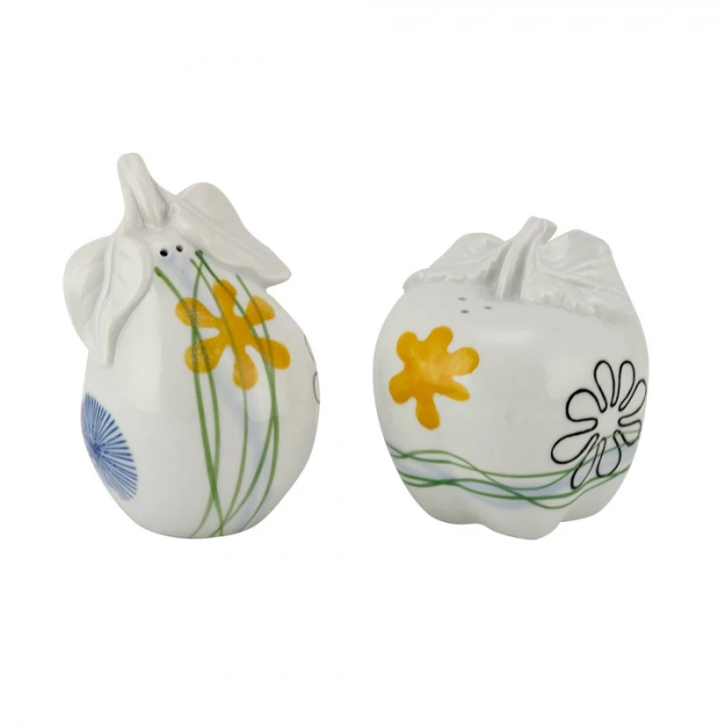 Αλατοπίπερο σετ 2τμχ πορσελάνης σε λευκό χρώμα με σχέδιο λουλούδια και σχήμα μήλο - αχλάδι από την WM Collection - Διαστάσεις: μήλου 6,8εκ., αχλαδιού 6,2εκ.