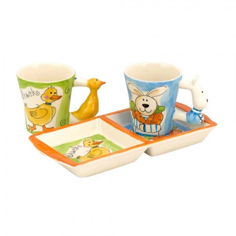 Παιδικό σετ πρωινού 3τμχ κεραμικό σε σχέδιο πάπια - λαγός από την WM Collection. Το σετ περιλαμβάνει: 1 δίσκο 11,5x14εκ., και 2 κούπες 125ml.