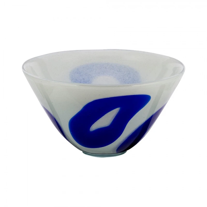 Χειροποίητη φρουτιέρα από φυσητό γυαλί σε λευκό - μπλε χρώμα από την WM Collection - Διαστάσεις: 18x17εκ.