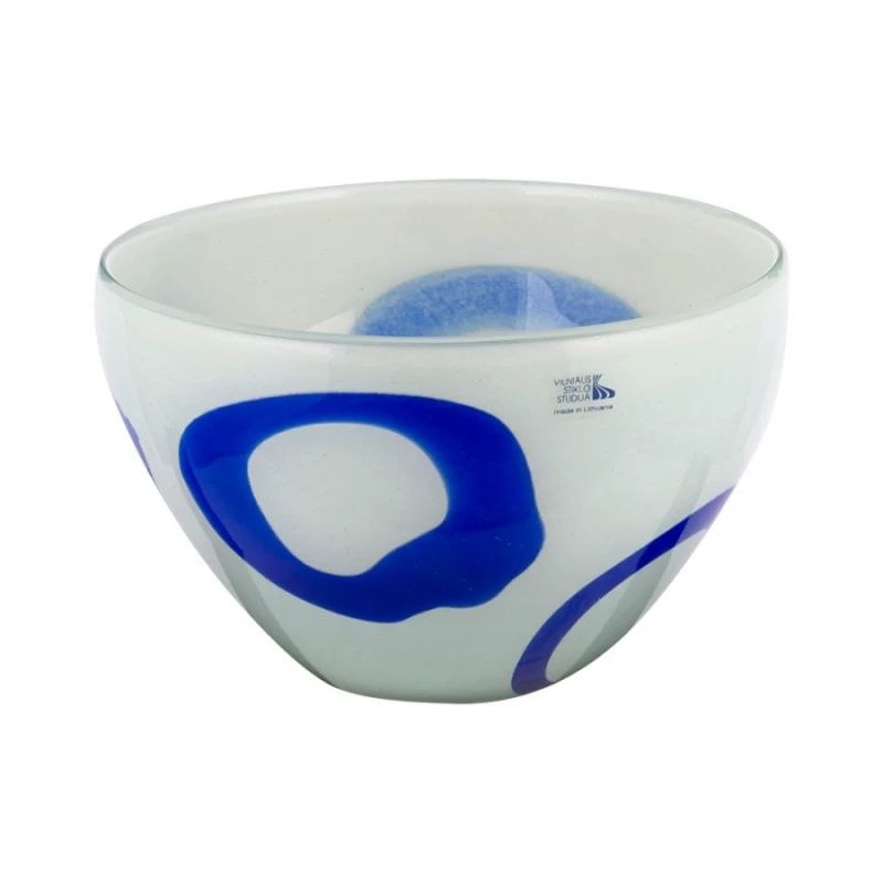 Χειροποίητη φρουτιέρα από φυσητό γυαλί σε λευκό - μπλε χρώμα από την WM Collection - Διαστάσεις: 22x16εκ.