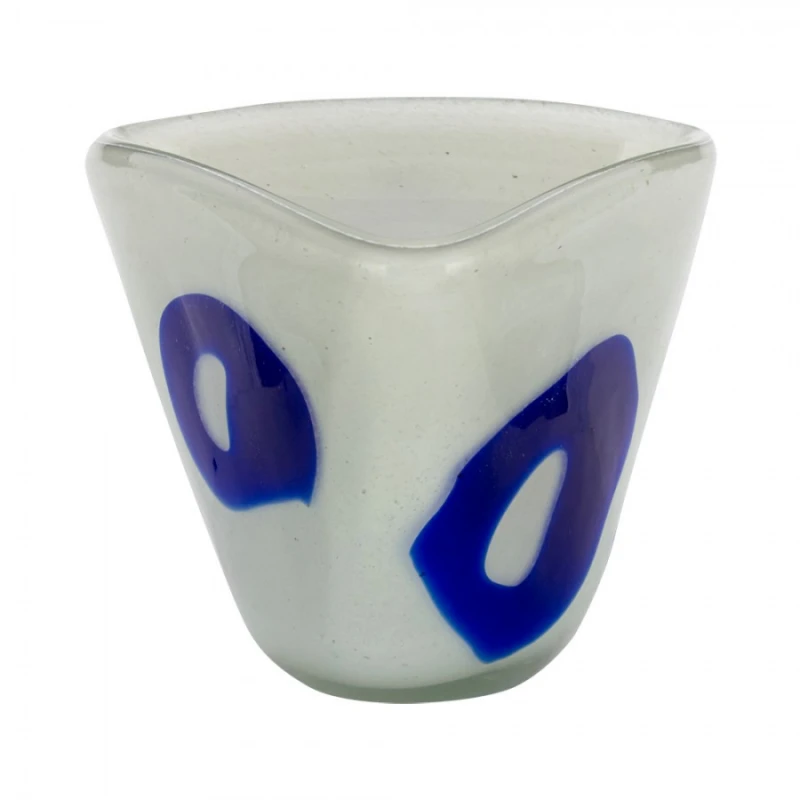 Χειροποίητο βάζο από φυσητό γυαλί σε λευκό - μπλε χρώμα από την WM Collection - Διαστάσεις: 18x17εκ.