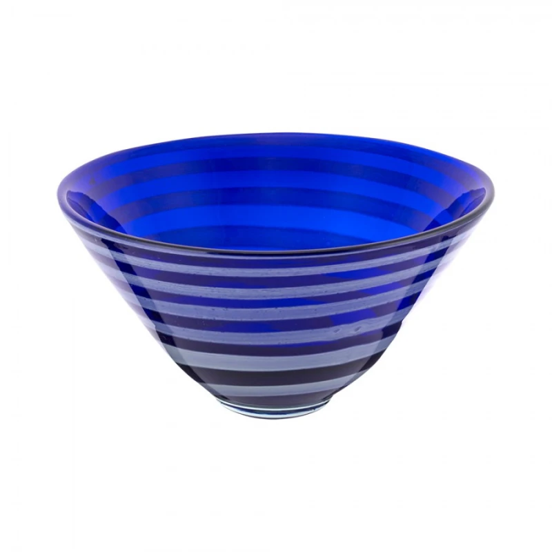 Χειροποίητη φρουτιέρα από φυσητό γυαλί σε λευκό - μπλε χρώμα από την WM Collection - Διαστάσεις: 27x18εκ.