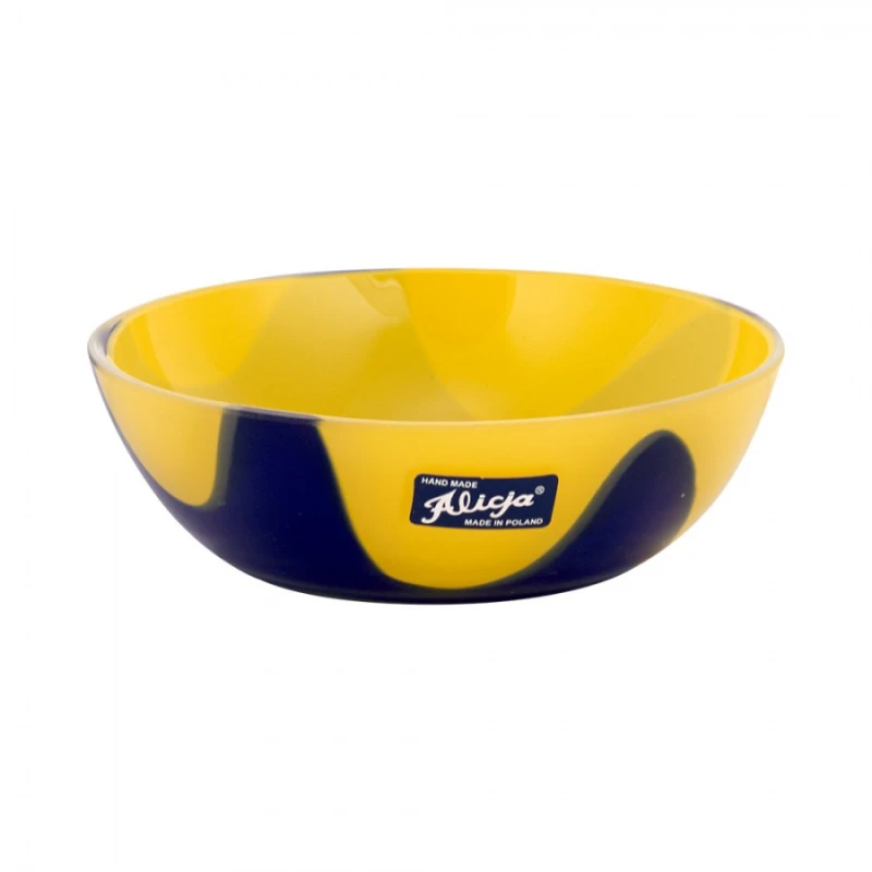 Χειροποίητo σταχτοδοχείο από φυσητό γυαλί σε κίτρινο χρώμα με μπλε λεπτομέρεια από την WM Collection - Διαστάσεις: 13x5εκ.
