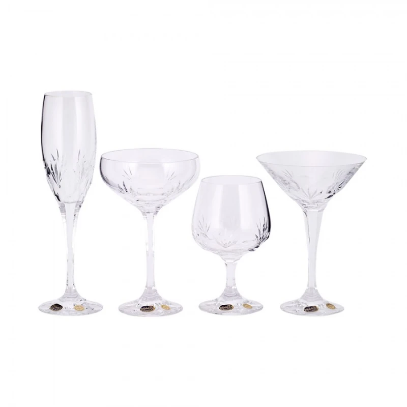 Ποτήρι σετ 6τμχ από κρύσταλλο Βοημίας, ταγιαρισμένα στο χέρι, σε διάφανο χρώμα από την WM Collection - Χωρητικότητας: Σαμπάνιας 345ml, Κονιάκ 350ml, Ούζου 205ml, Μαρτίνι 265ml