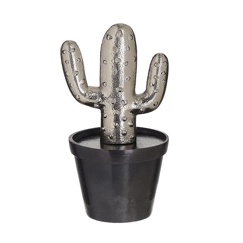 Επιτραπέζιο διακοσμητικό αλουμινίου με σχέδιο κάκτος σε γλάστρα σε ασημί - μαύρο χρώμα από την inart - Διαστάσεις: 13x13x22εκ.