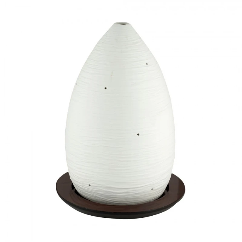 Επιτραπέζιο φωτιστικό πορσελάνης, διάτρητο σε λευκό χρώμα με ξύλινη βάση από την WM Collection - Διαστάσεις: 19x30εκ.