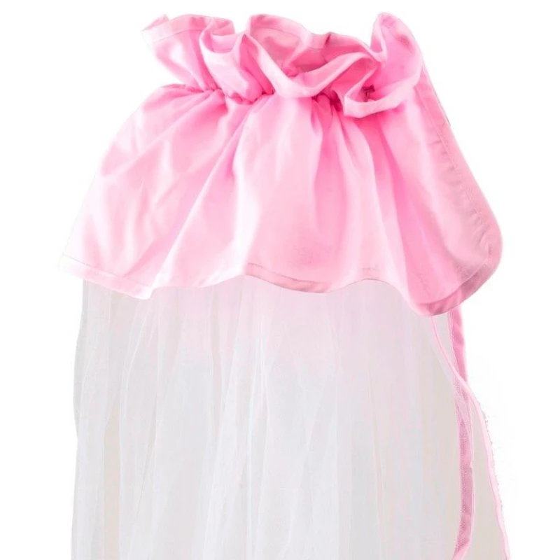 Κουνουπιέρα λίκνου 100% νάυλον τούλι και 100% βαμβακερό καπέλο, με κορδόνια στήριξης, δροσερή, αεριζόμενη, ελληνικής κατασκευής, σε λευκό - ροζ χρώμα, από την εταιρεία Ο Κόσμος του Μωρού - Διαστάσεις: 160x360εκ.