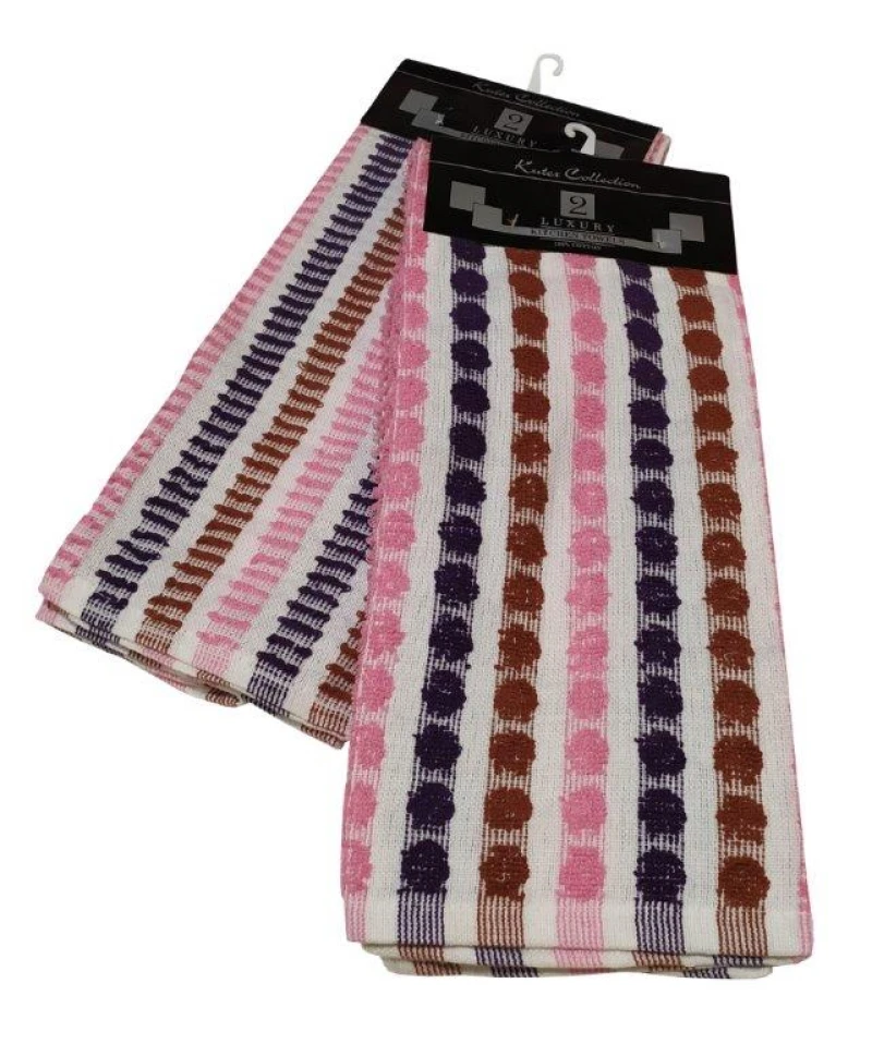 Σετ 2τμχ ποτηρόπανα πετσετέ 100% βαμβακερά, της σειράς luxury σε ροζ - μπλε - καφέ αποχρώσεις από την Komvos Home - Διαστάσεις: 45x65εκ.