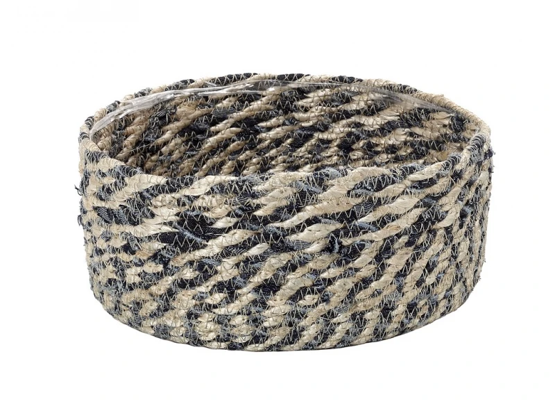 Καλάθι ψάθινο σε μπλε - μαύρο χρώμα από την ESPIEL - Διαστάσεις: 30x13εκ.