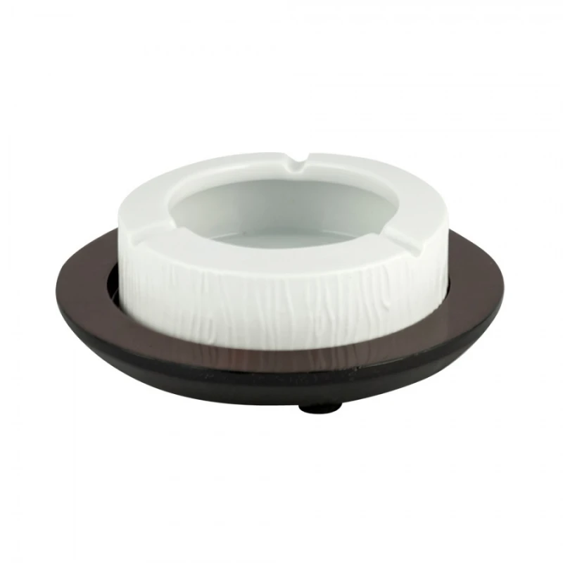 Σταχτοδοχείο πορσελάνης, σε λευκό χρώμα με ξύλινη βάση από την WM Collection - Διαστάσεις βάσης: 15εκ.