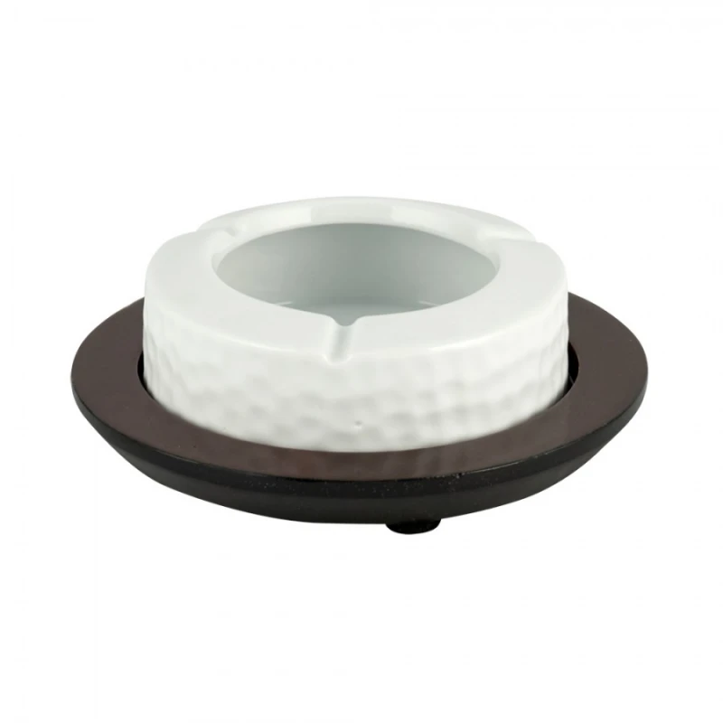 Σταχτοδοχείο πορσελάνης, σε λευκό χρώμα με ξύλινη βάση από την WM Collection - Διαστάσεις βάσης: 15εκ.