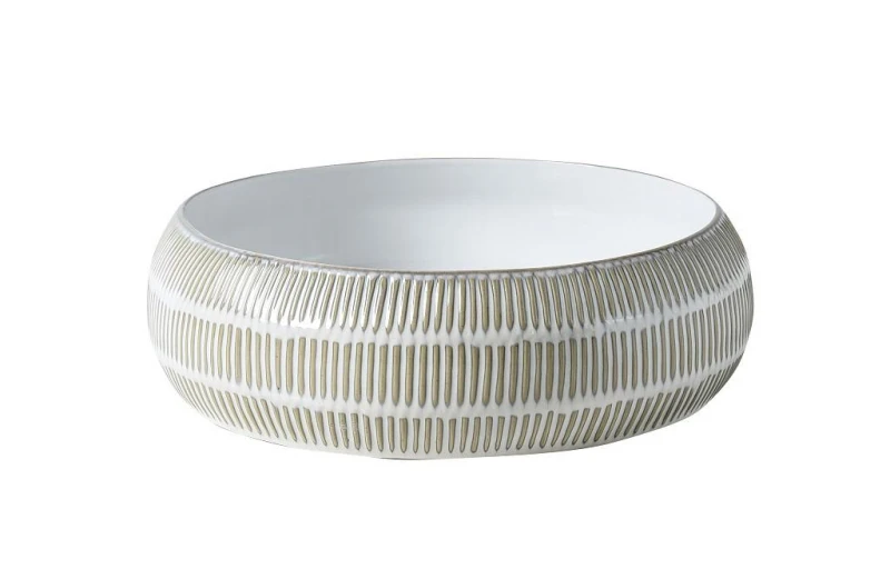 Διακοσμητικό δοχείο κεραμικό σε λαδί - λευκό χρώμα από την ESPIEL - Διαστάσεις: 31,5x9,5εκ.