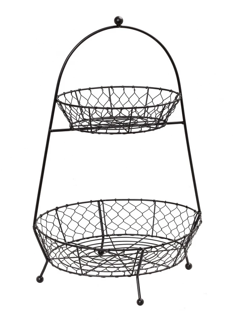 Φρουτιέρα μεταλλική 2όροφη , σε μαύρο χρώμα από την ESPIEL - Διαστάσεις: 34x26x52εκ.