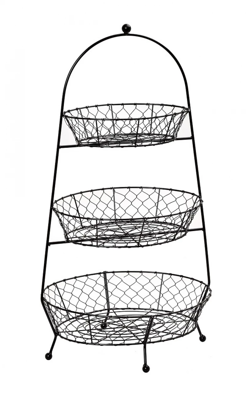 Φρουτιέρα μεταλλική 3όροφη , σε μαύρο χρώμα από την ESPIEL - Διαστάσεις: 34x26x65εκ.