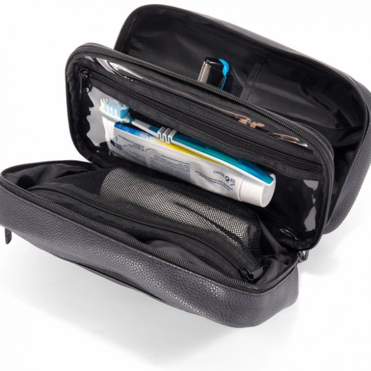 Νεσεσέρ ανδρικό, PVC με πολλαπλούς εσωτερικούς χώρους που κάθε χώρος κλείνει ξεχωριστά με φερμουάρ, σε μαύρο χρώμα από την benzi - Διαστάσεις: 28x10x15εκ.