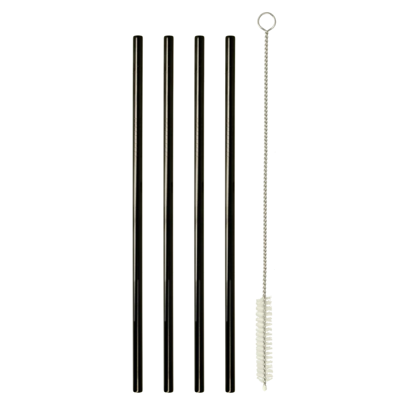 Καλαμάκια ανοξείδωτα σετ 4τμχ ίσια σε μαύρο χρώμα, επαναχρησιμοποιούμενα με βουρτσάκι καθαρισμού από την Metaltex - Διαστάσεις: 21,5εκ.