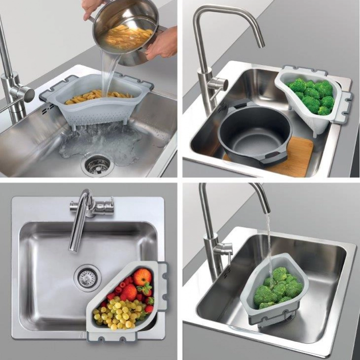 Σουρωτήρι γωνιακό πλαστικό με πτυσσόμενα και ρυθμιζόμενα αντιολισθητικά χέρια για εξοικονόμηση χώρου στον νεροχύτη από την Metaltex - Χωρητικότητας: 3,1litr.