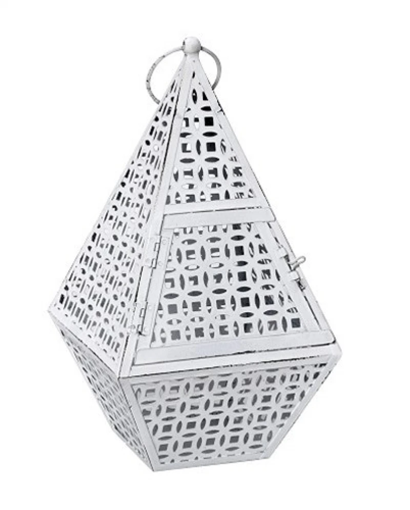 Φανάρι μεταλλικό τριγωνικό σε λευκό χρώμα από την ESPIEL - Διαστάσεις: 17,5x17,5x33εκ.