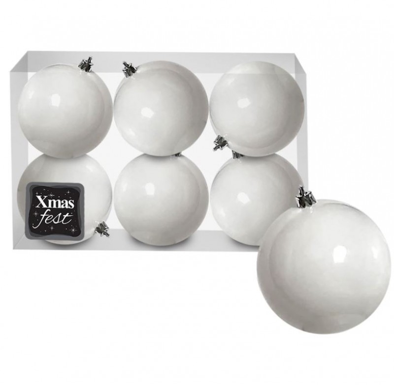 Σετ μπάλες 6 τμχ 3 γυαλιστερές και 3 glitter σε λευκό χρώμα από την Xmas fest - Διαστάσεις: Δ6εκ.