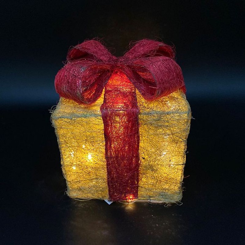 Χριστουγεννιάτικο διακοσμητικό κουτί δώρου με 20 led και κίτρινο φως από την Xmas fest - Διαστάσεις: 15εκ. Μπαταρίες 3ΑΑ - Δεν Περιέχονται.
