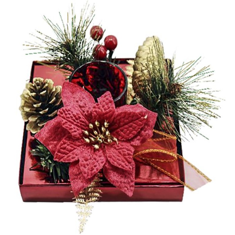 Χριστουγεννιάτικο κηροπήγιο με κλωνάρια σε κόκκινο χρώμα από την Xmas fest - Διαστάσεις: 9x15εκ.