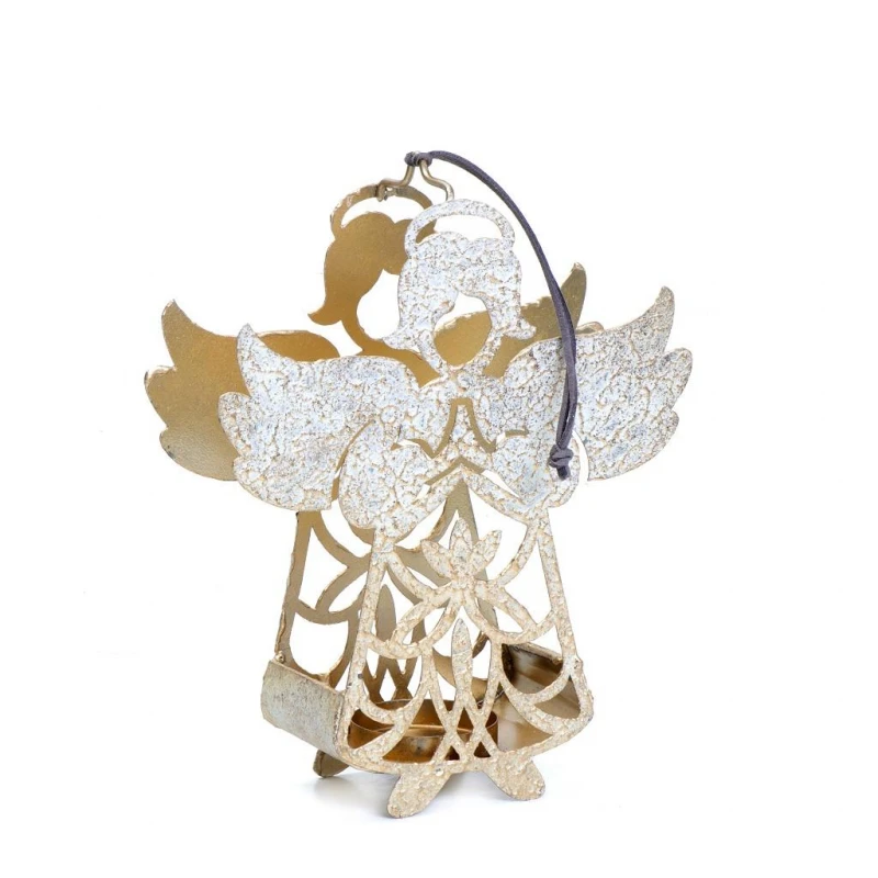 Χριστουγεννιάτικο κηροπήγιο μεταλλικό με βάση για ρεσώ σε εκρού-σαμπανί χρώμα από την ESPIEL - Διαστάσεις: 17x6x21,5εκ. - Η ελάχιστη ποσότητα αγοράς για αυτό το προϊόν είναι 4τμχ.